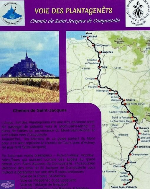 Le guide de la Voie des Plantagenêts décrit le chemin qui, partant du Mont Saint Michel en Normandie, traverse ensuite l'Ille-et-Vilaine, le Maine-et-Loire, les Deux-Sèvres pour rejoindre la Voie de Tours à Aulnay de Saintonge. (Coordonnées des associations jacquaires vers l'Espagne disponibles sur le portail des Associations jacquaires de l'Arc Atlantique).