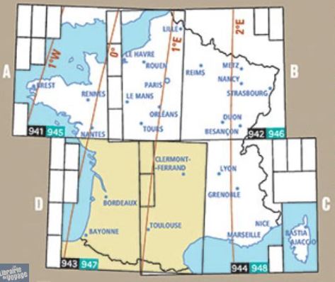 Cartes IGN OACI France Sud-Ouest en papier standard.