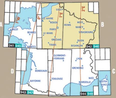 Cartes IGN OACI France Nord-Est en papier plastifié.
