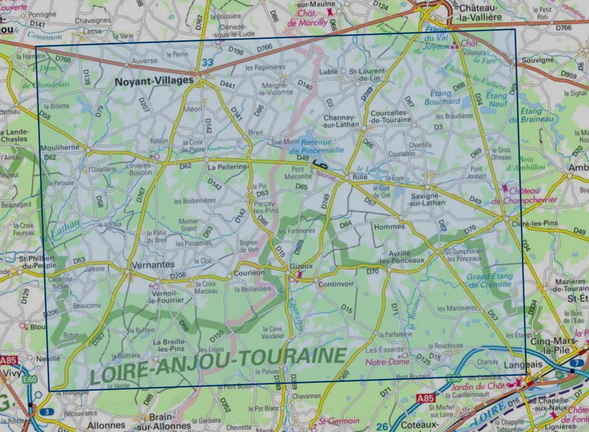 Communes couvertes : Château-la-Vallière, Continvoir, Channay-sur-Lathan, Courcelles-de-Touraine, Rillé, Courléon, Gizeux, Avrillé-les-Ponceaux, Mouliherne, Hommes, Lublé, La Pellerine, Savigné-sur-Lathan, Saint-Laurent-de-Lin, Noyant-Villages, Langeais, Cléré-les-Pins, La Breille-les-Pin