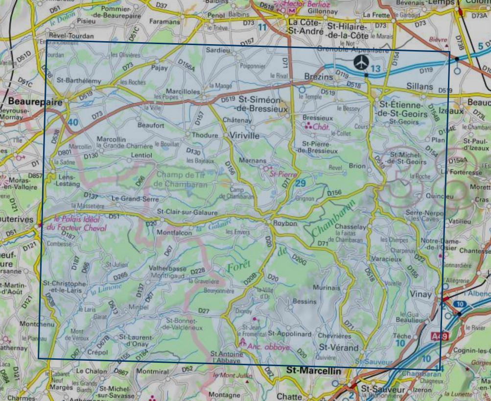 Communes couvertes : St-Etienne de St-Geoirs, Le Grand-Serre, Valherbasse, Saint-Barthélemy, Beaurepaire, Bessins, Montfalcon, Marnans, Saint-Pierre-de-Bressieux, Chevrières, Le Grand-Serre, Hauterives, Brézins, Montchenu, Bressieux, Quincieu, Lens-Lestang, Châtenay, Viriville, Saint-Siméon-de-Bressieux