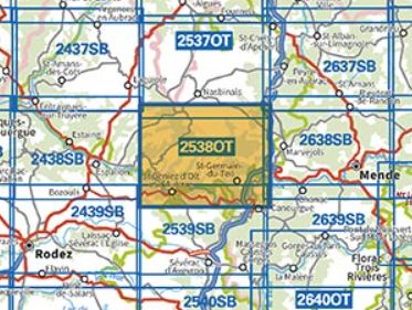 - I.G.N - Carte au 1-25.000ème - TOP 25 - 2538 OT - Sainte-Eulalie-d'Olt - Haute vallée du Lot - Monts d'Aubrac