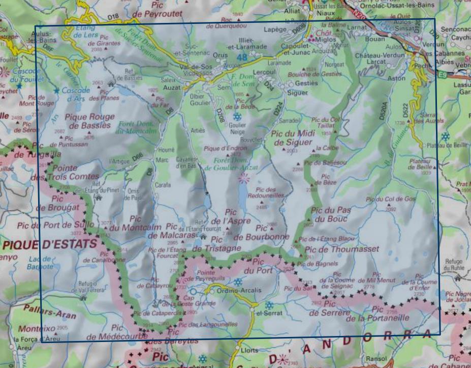 Lieux à découvrir : Parc naturel régional Pyrénées ariégeoises,Forêt Domaniale de Goulier-Auzat, Forêt Domaniale du Montcalm, Forêt Domaniale de Sem, Bois de Gudanes, Forêt Domaniale de Suc-et-Sentenac,Pic du Port de Sullo, Pic des Bareytes, Pic de Cabayrou, Pointe de Peyreguils, Pic du Far, Pic des Planes, Pique Rouge de Bassiès, Pic de Cataperdis, Pic de Mil Menut, Pic de Bourbonne, le Quiè, Pic de Puntussan, Pic de Bagnels, Pic de Tristagne, Pic d,Cascade d'Ars, Refuge des Étangs de Bassiès, Refugio de Val Ferrera, Refuge de l'Étang du Pinet.