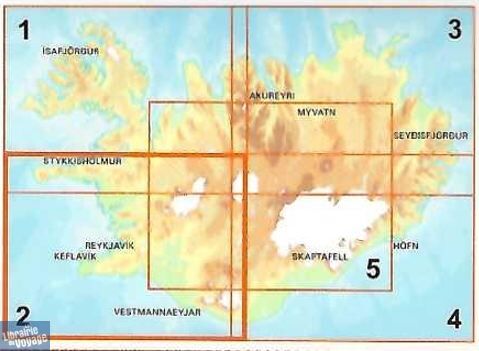 Une excellente carte (en matière plastifiée) du sud-ouest de l'islande au 1/250.000ème (1cm = 2.50km)