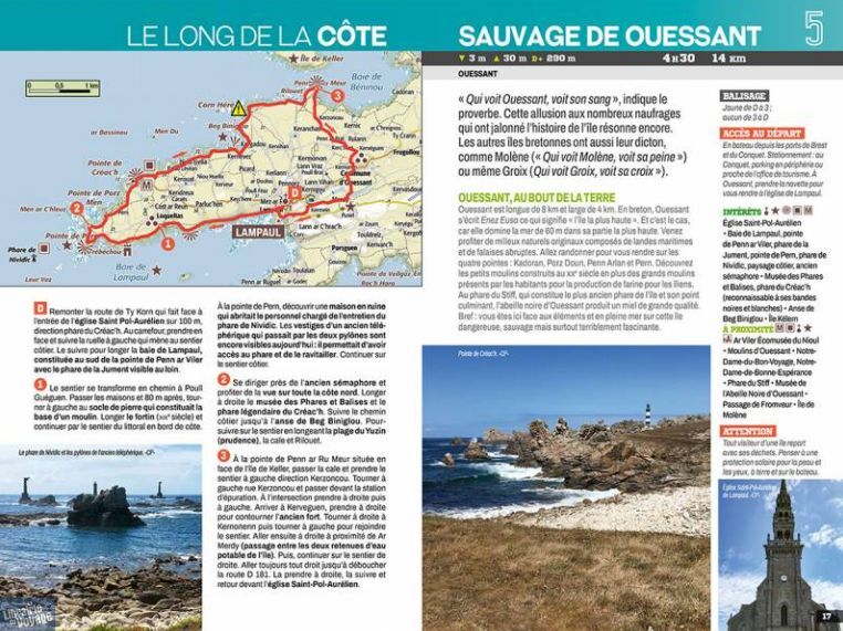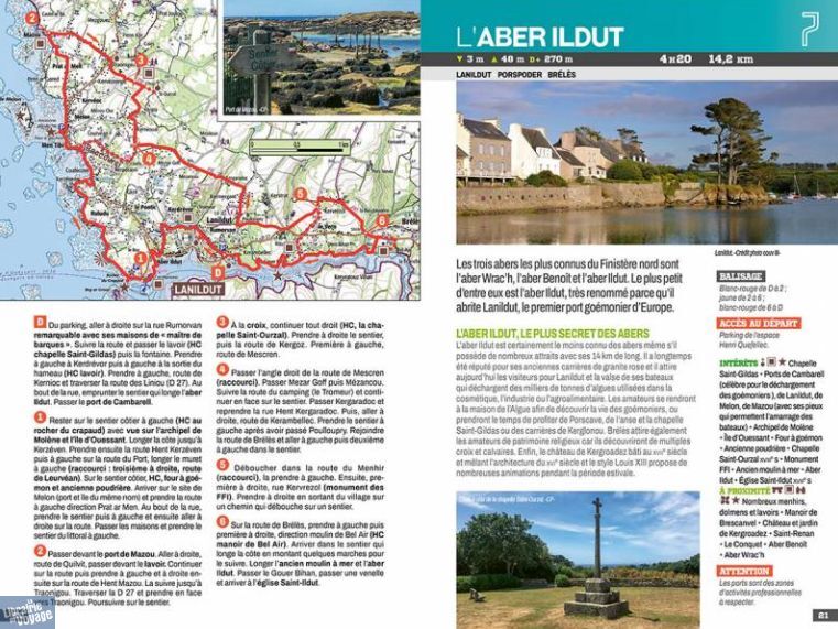 Ce guide permet d'explorer à pied la diversité des univers propres au nord du Finistère. Des côtes sauvages de Ouessant aux fameux abers, ces vallées envahies par l'océan, en passant par le goulet de Brest et le littoral du Finistère Nord, l'auteure nous fait découvrir l'identité d'une Bretagne authentique et mystérieuse. Le territoire concerné s'étend de l'île d'Ouessant à l'ouest à Locquirec à l'est, et de la presqu'île de Plougastel Daoulas au sud à l'île de Batz au nord.