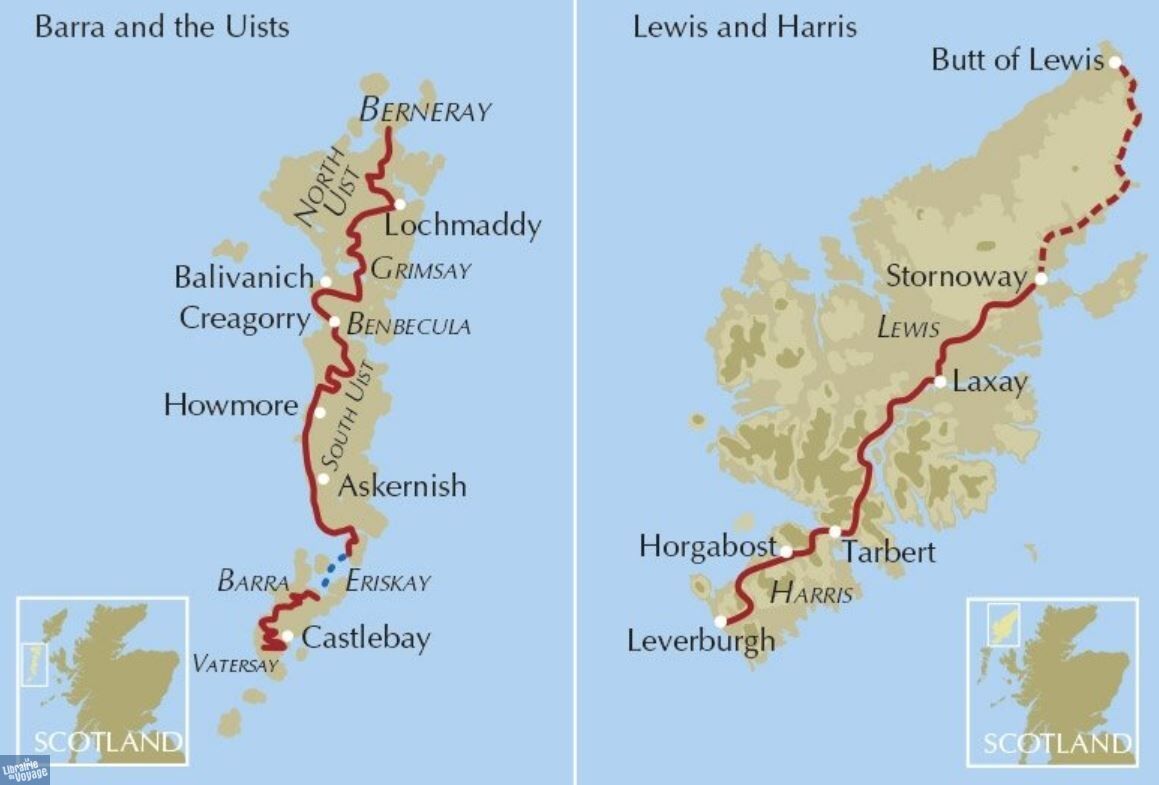 En voici une bonne idée : traverser les îles Hébrides extérieures à pied. Un beau parcours de près de 250 km. Guide en anglais