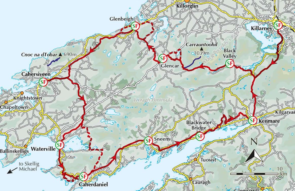 Killarney, Black Valley, Glencar, Glenbeigh, Cahersiveen, Waterville, Caherdaniel, Sneem, and Kenmare