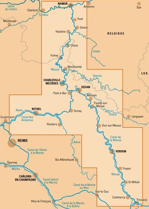 Dans cette nouvelle édition de notre guide n° 17, nous suivons la vallée de la Meuse du village de Troussey en France jusqu’à Maastricht en Belgique. Entre Troussey et Sedan, vous naviguerez sur le canal de la Meuse, en partie voie d’eau artificielle et en partie rivière canalisée.