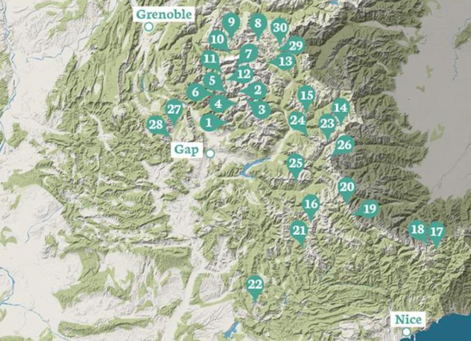 Région / Ville | Alpes-de-Haute-Provence, Alpes-Maritimes, Hautes-Alpes, Isère |