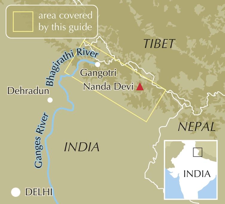Guidebook to 8 treks in the Uttarakhand Himalaya, including the Nanda Devi Sanctuary, Shivling and the source of the Ganges. Ranging from 3 to 8 days, these guided trekking routes take in verdant valleys, alpine meadows, peaks, glaciers, holy sites and national parks, with the chance to see protected species such as snow leopard and musk deer.