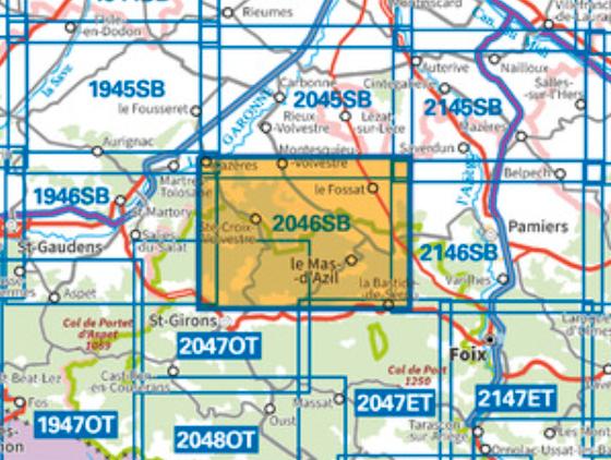 L'indispensable carte de randonnée IGN 2046SB. D'une très grande précision elle contient tous les détails existants sur le terrain : voies de communication jusqu'au moindre sentier, constructions jusqu'au hangar, bois, arbre isolé, rivière, source... Sans oublier la représentation du relief par des courbes de niveau. Les sentiers balisés et les informations touristiques sont également représentés.