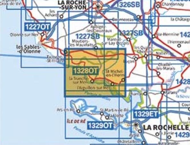 I.G.N - Carte au 1-25.000ème - TOP 25 - 1328 OT - La Tranche-sur-mer - L'Aiguillon-sur-mer - PNR du Marais Poitevin