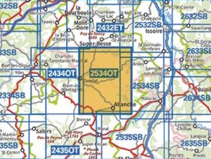 L'indispensable carte de randonnée IGN 2534OT. D'une très grande précision elle contient tous les détails existants sur le terrain : voies de communication jusqu'au moindre sentier, constructions jusqu'au hangar, bois, arbre isolé, rivière, source... Sans oublier la représentation du relief par des courbes de niveau. Les sentiers balisés et les informations touristiques sont également représentées.