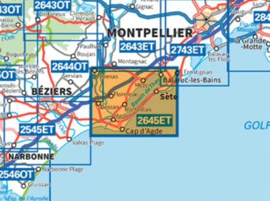 I.G.N - Carte au 1-25.000ème - TOP 25 - Sète - Cap d'Agde - Étang de Thau