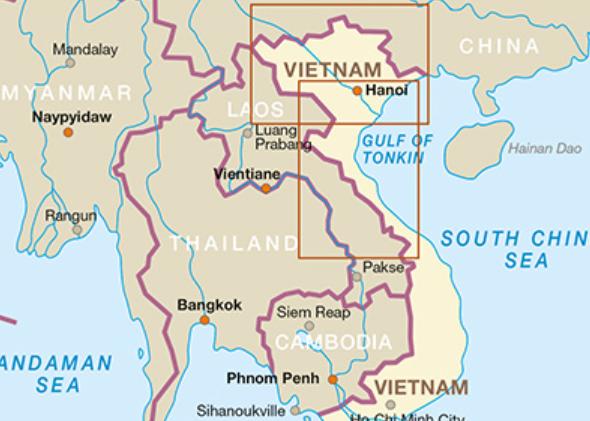 Une très belle carte routière recto/verso du nord du Vietnam au 1/600.000e (1cm = 6km). En matière résistante